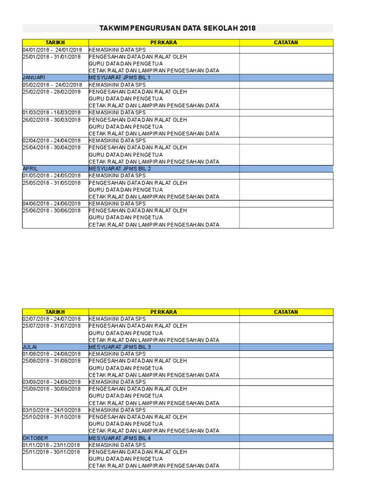 TAKWIM PENGURUSAN DATA SEKOLAH 2020 TARIKH 01012020 - 24012020 25012020- 31012020 JANUARI 05022020 - Study Resources. Buku Panduan Tugas Guru dan Staf Sekolah 202223. CETAKAN PASSWORD GURU DATA TERKINI 5.